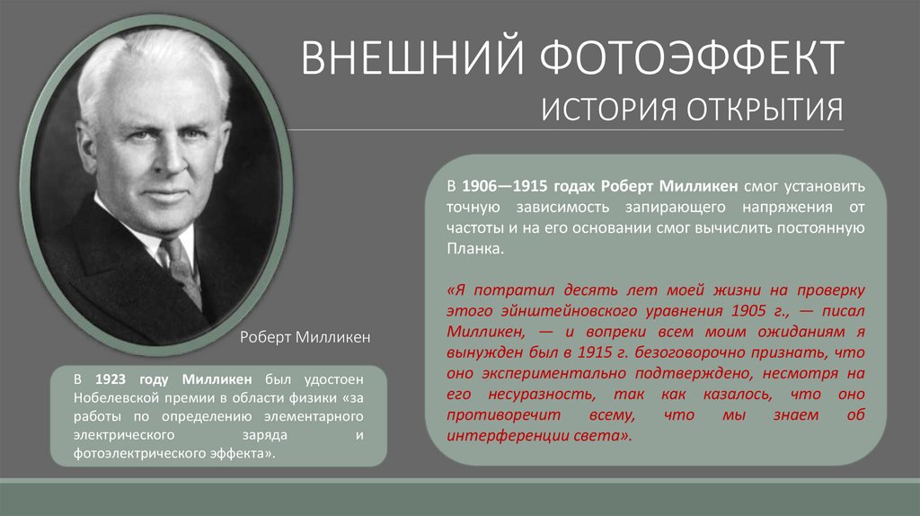 В 1906—1915 годах Роберт Милликен смог установить