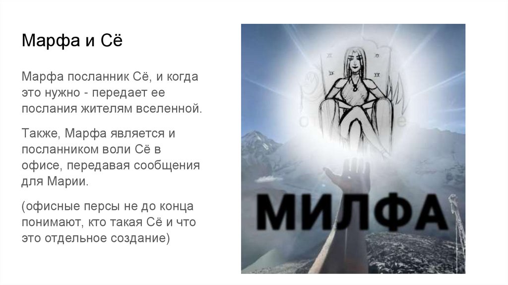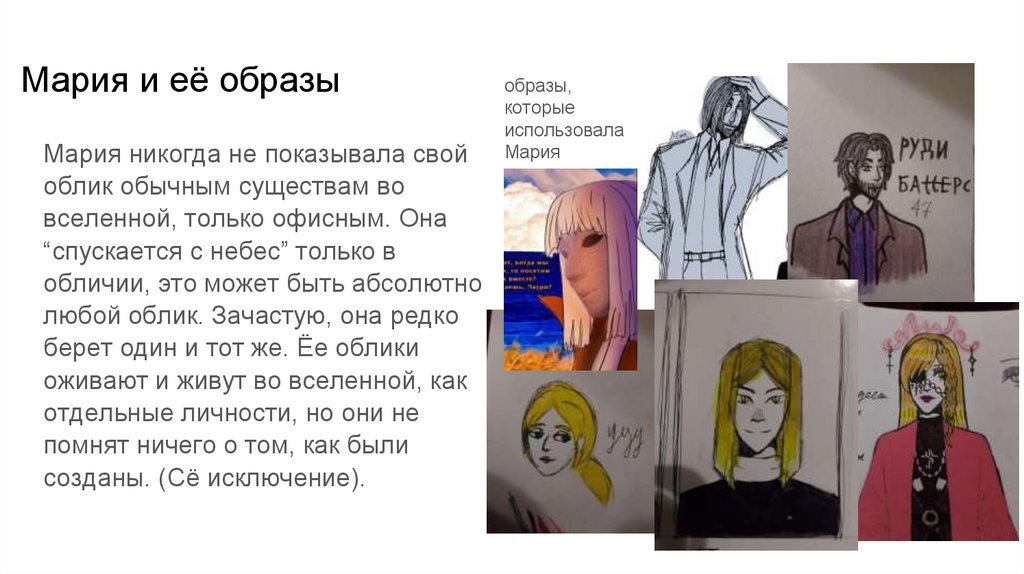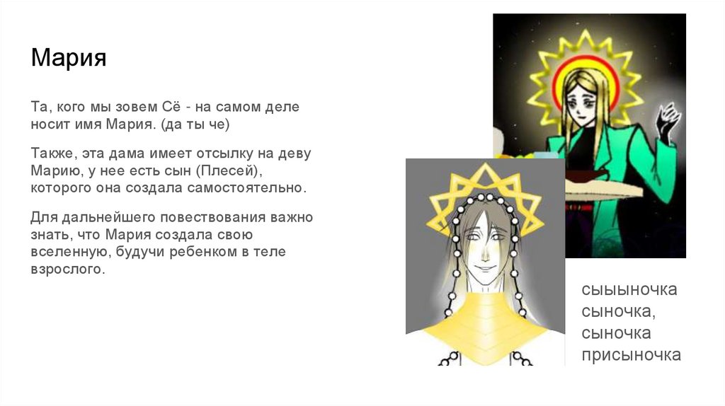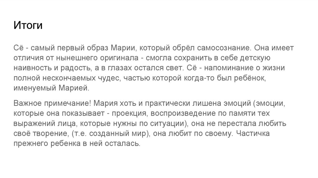 ИтогиСё - самый первый образ Марии, который обрёл самосознание. Она имеет