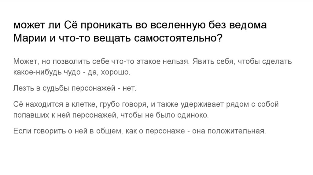 может ли Сё проникать во вселенную без ведомаМарии и что-то вещать самостоятельно?