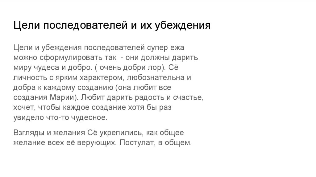Цели последователей и их убежденияЦели и убеждения последователей супер ежа