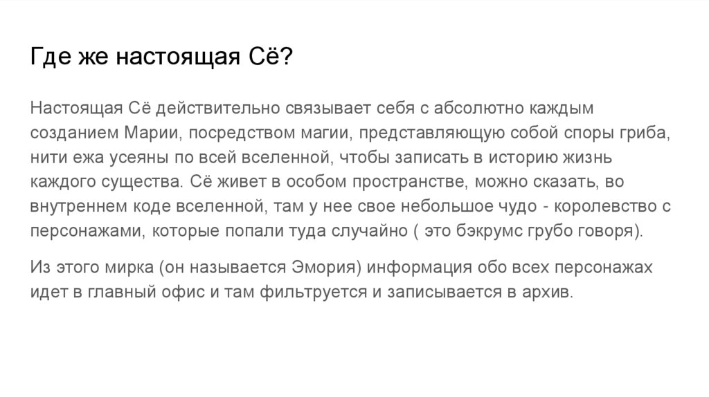 внутреннем коде вселенной, там у нее свое небольшое чудо - королевство с