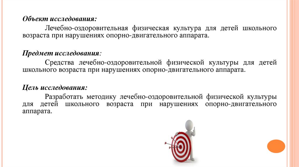 Объект исследования:Лечебно-оздоровительная физическая культура для детей школьного