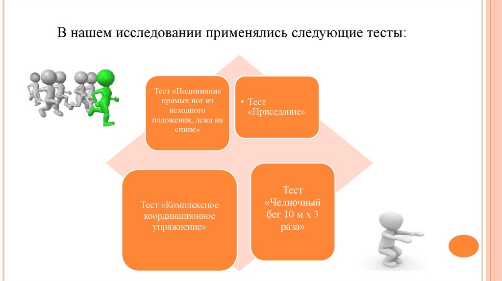 В нашем исследовании применялись следующие тесты:Тест «Поднимание