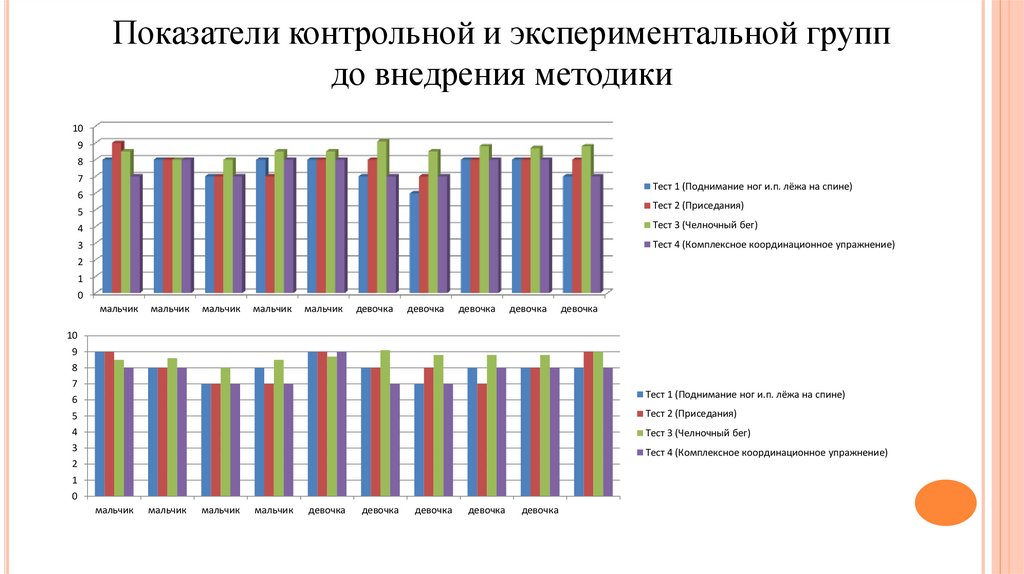 Показатели контрольной и экспериментальной группдо внедрения методики
