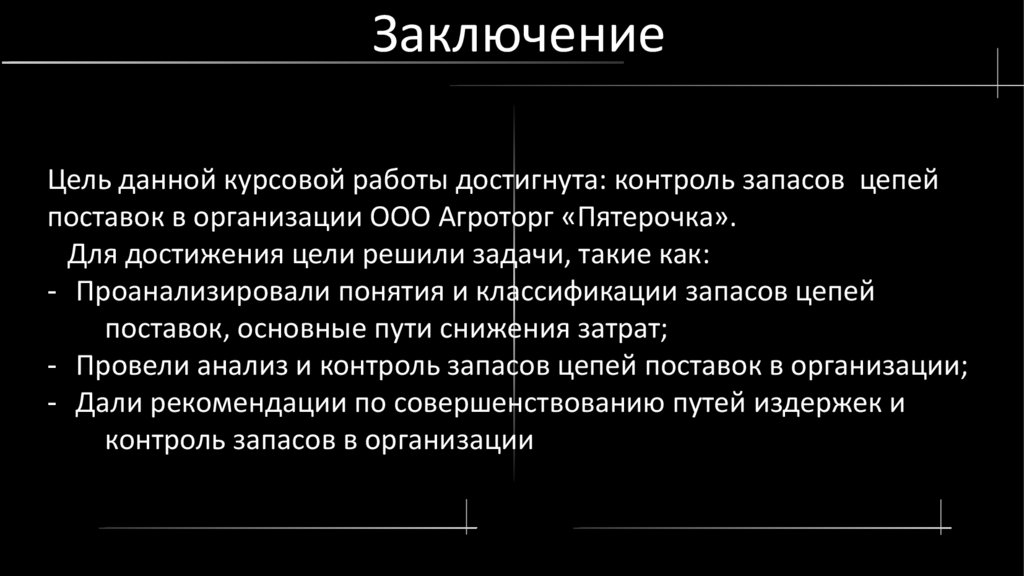 ЗЗаключениеЦель данной курсовой работы достигнута: контроль запасов цепей