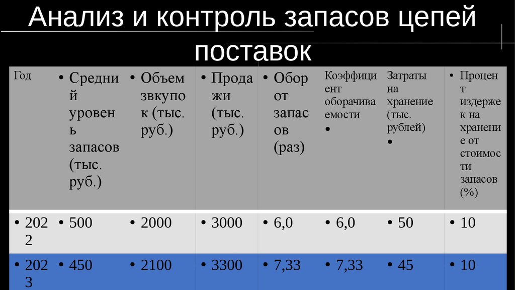 В процессе анализа запасов необходимо учитывать уровень спроса, сезонные колебания,
