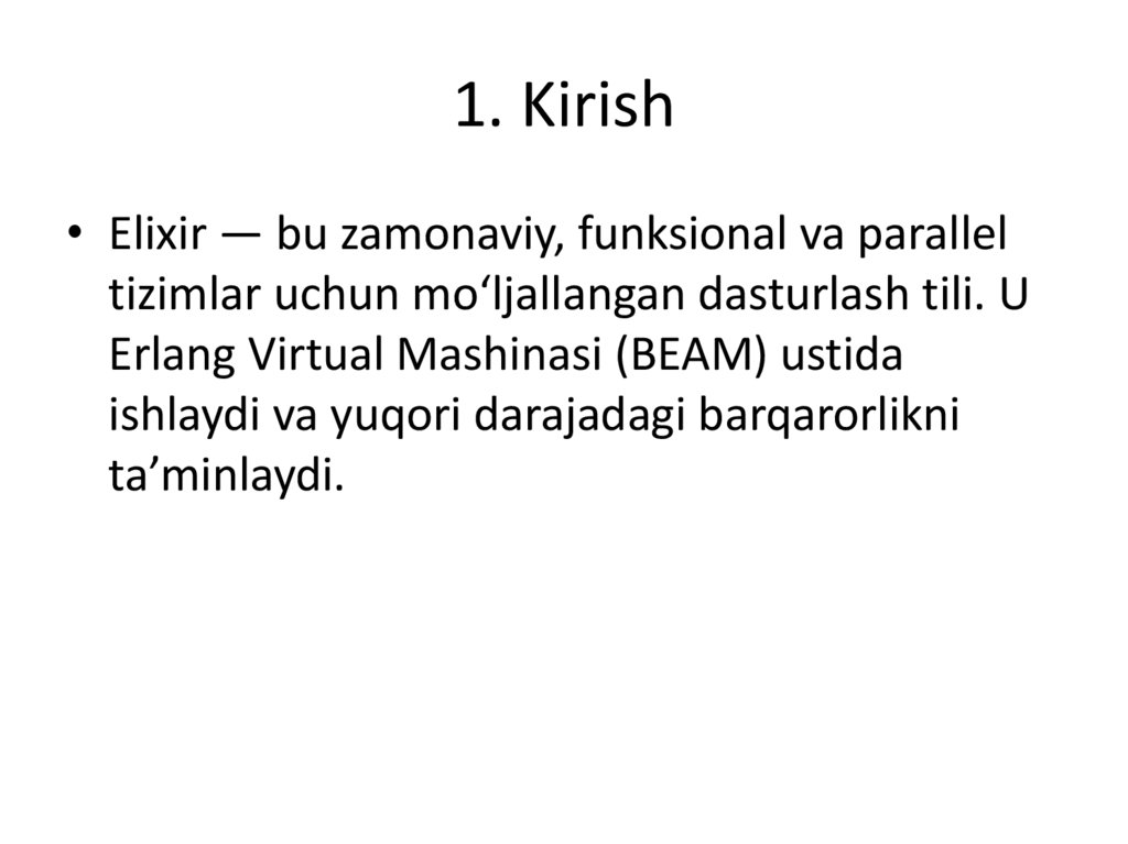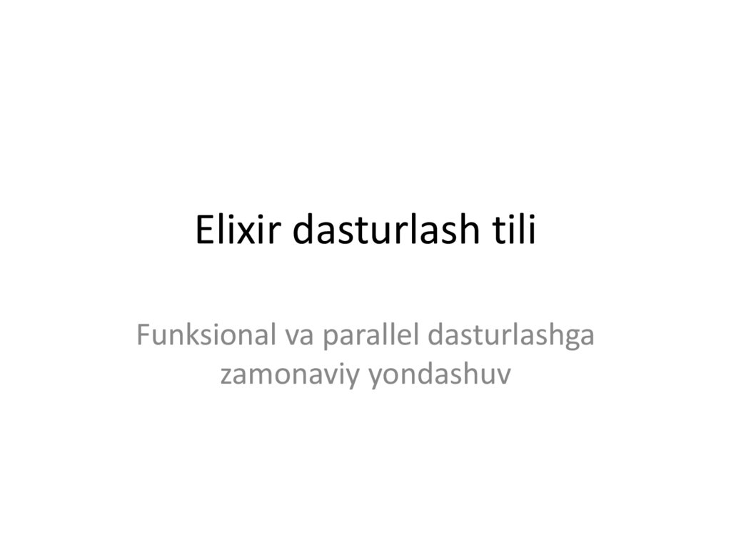 1. Kirish• Elixir — bu zamonaviy, funksional va parallel