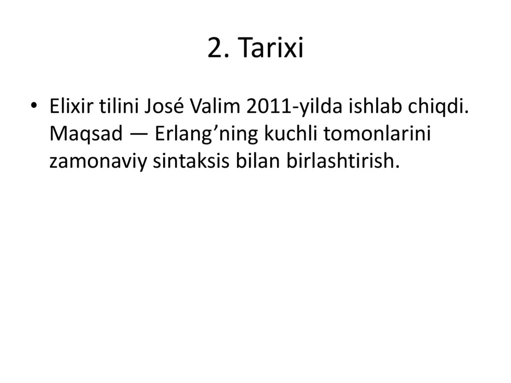 2. Tarixi• Elixir tilini José Valim 2011-yilda ishlab chiqdi.
