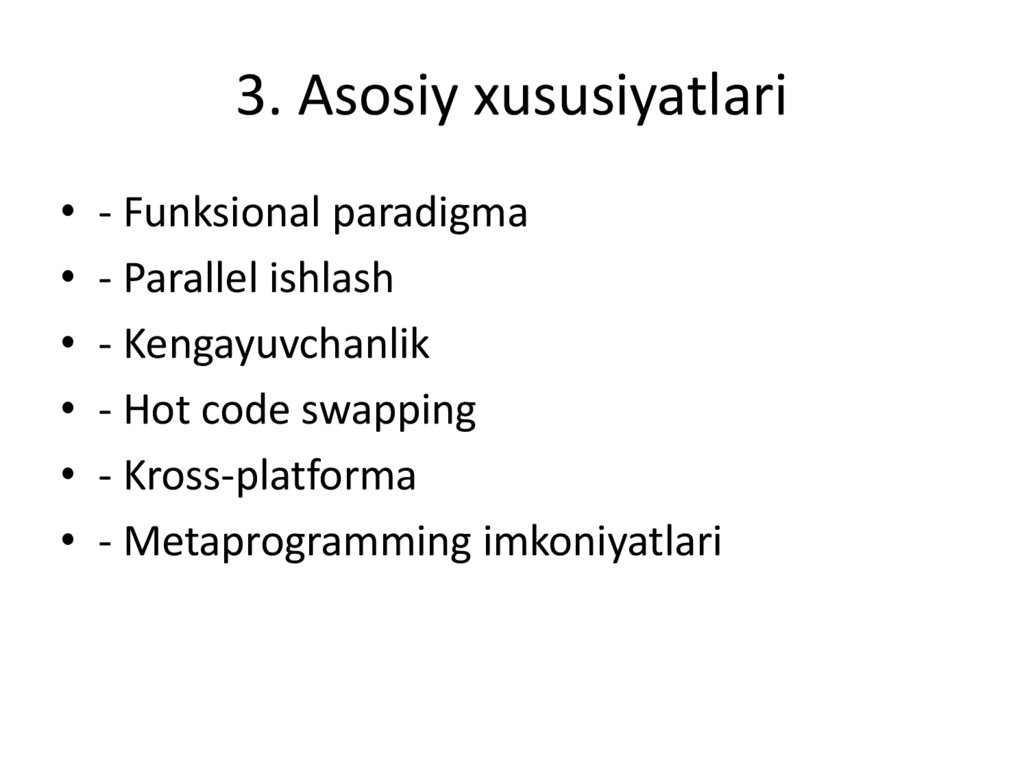 3. Asosiy xususiyatlari• - Funksional paradigma