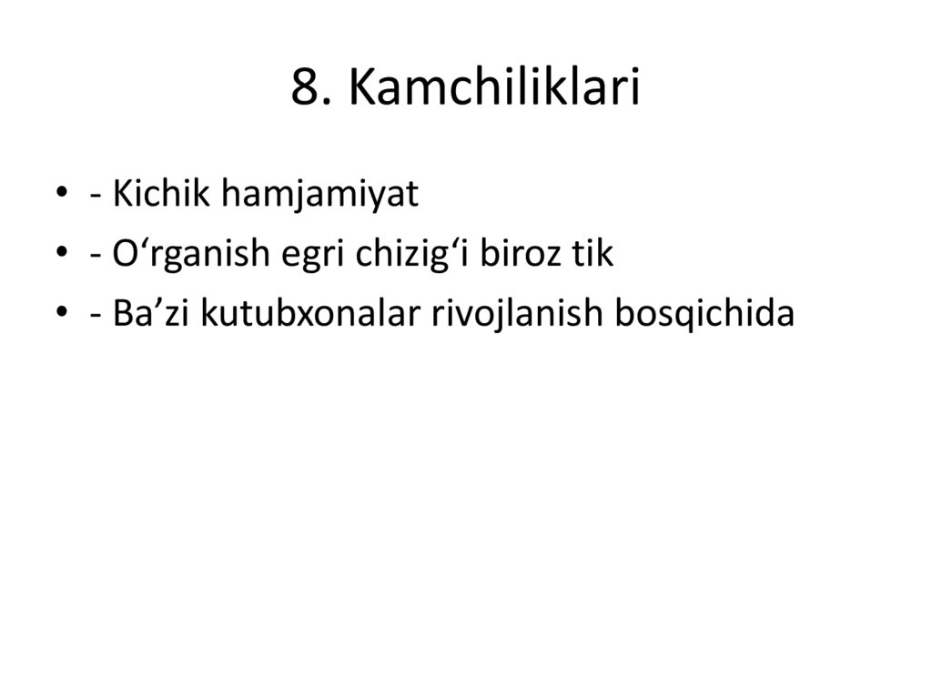• - Ba’zi kutubxonalar rivojlanish bosqichida