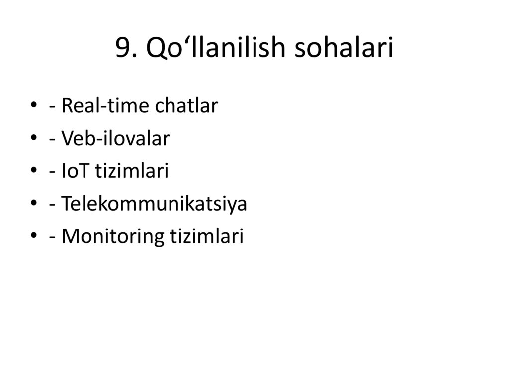 9. Qo‘llanilish sohalari• - Real-time chatlar