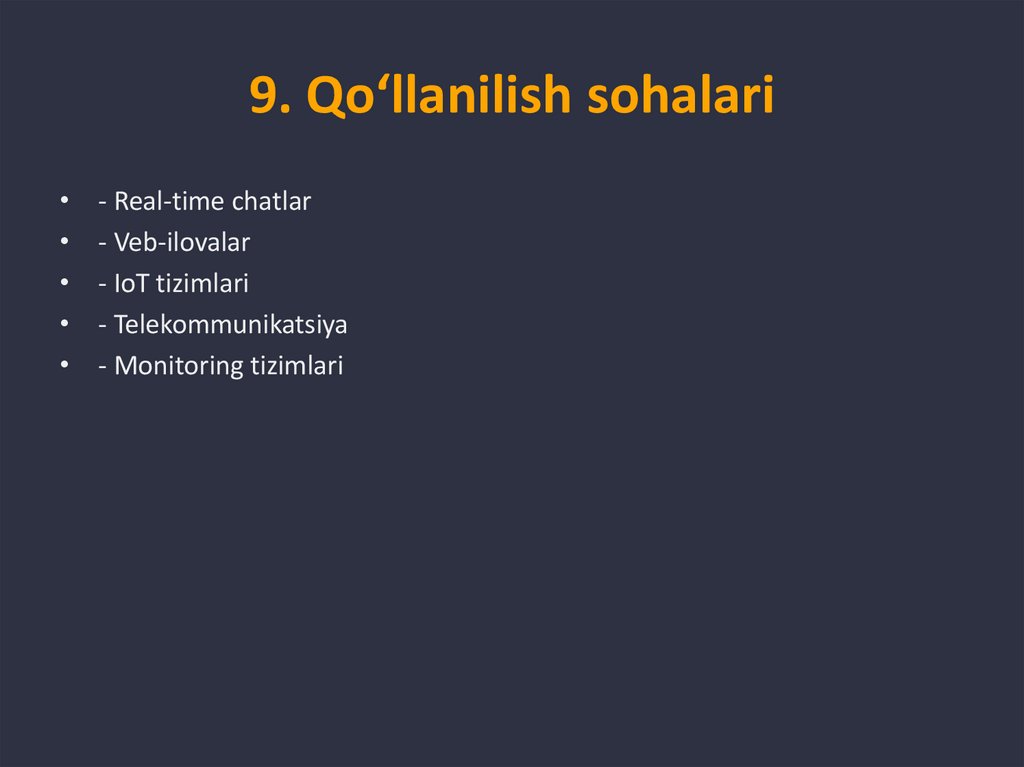 9. Qo‘llanilish sohalari- Real-time chatlar