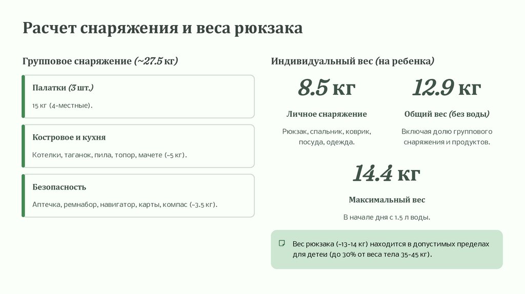 Расчет снаряжения и веса рюкзакаГрупповое снаряжение (~27.5 кг)
