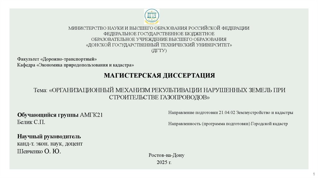 Направление подготовки 21.04.02 Землеустройство и кадастры