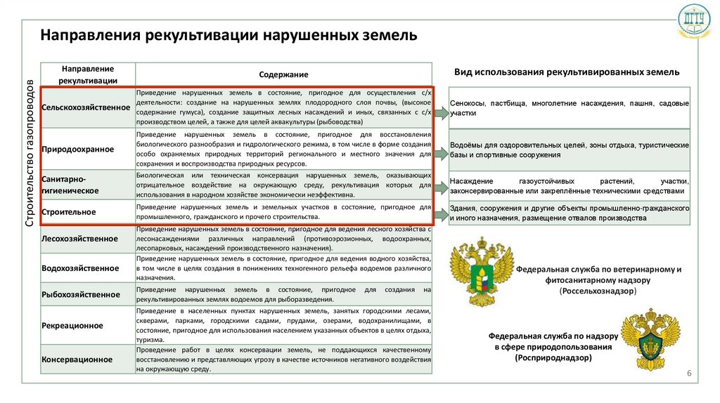 восстановлением нарушенных земель при строительстве и реконструкции газопроводов