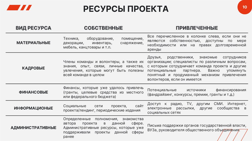 РЕСУРСЫ ПРОЕКТАВИД РЕСУРСА
