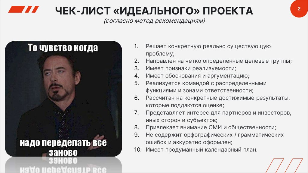 ЧЕК-ЛИСТ «ИДЕАЛЬНОГО» ПРОЕКТА(согласно метод рекомендациям)
