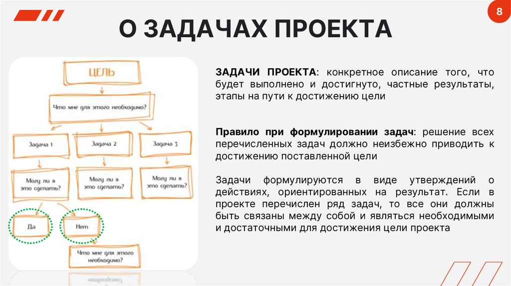 О ЗАДАЧАХ ПРОЕКТАЗАДАЧИ ПРОЕКТА: конкретное описание того, что