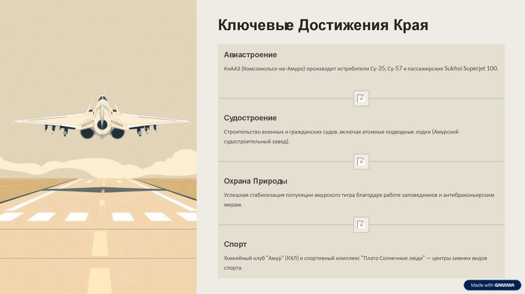 КнААЗ (Комсомольск-на-Амуре) производит истребители Су-35, Су-57 и пассажирские Sukhoi Superjet 100.