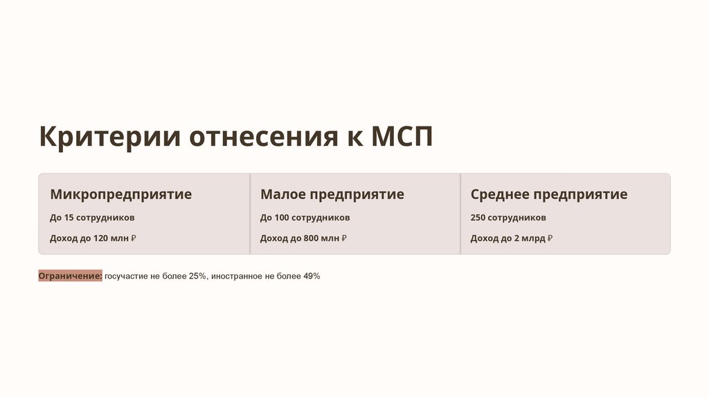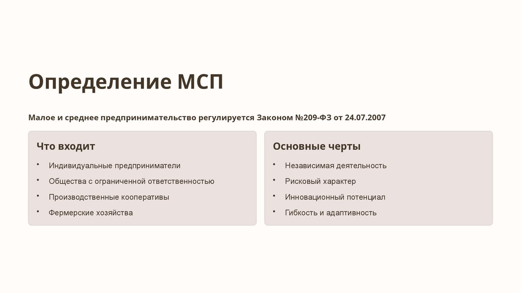 Определение МСПМалое и среднее предпринимательство регулируется Законом №209-ФЗ от 24.07.2007