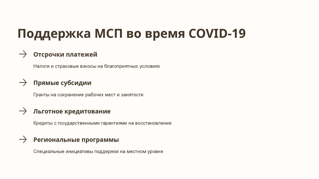 Поддержка МСП во время COVID-19Отсрочки платежей