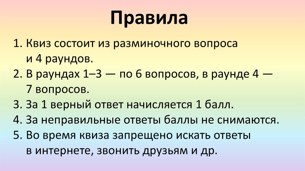 2. В раундах 1–3 — по 6 вопросов, в раунде 4 —