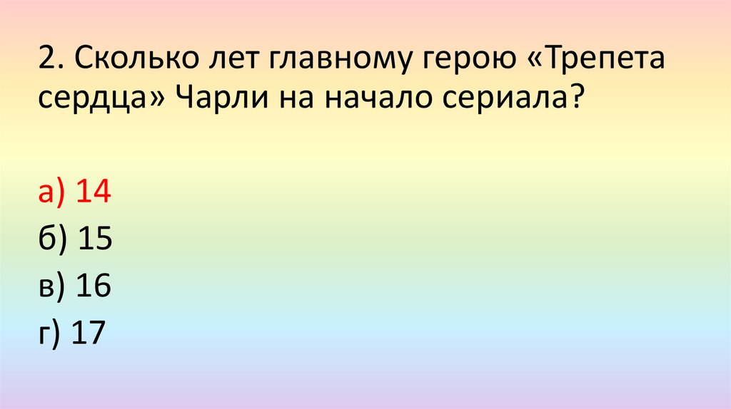 2. Сколько лет главному герою «Трепетасердца» Чарли на начало сериала?