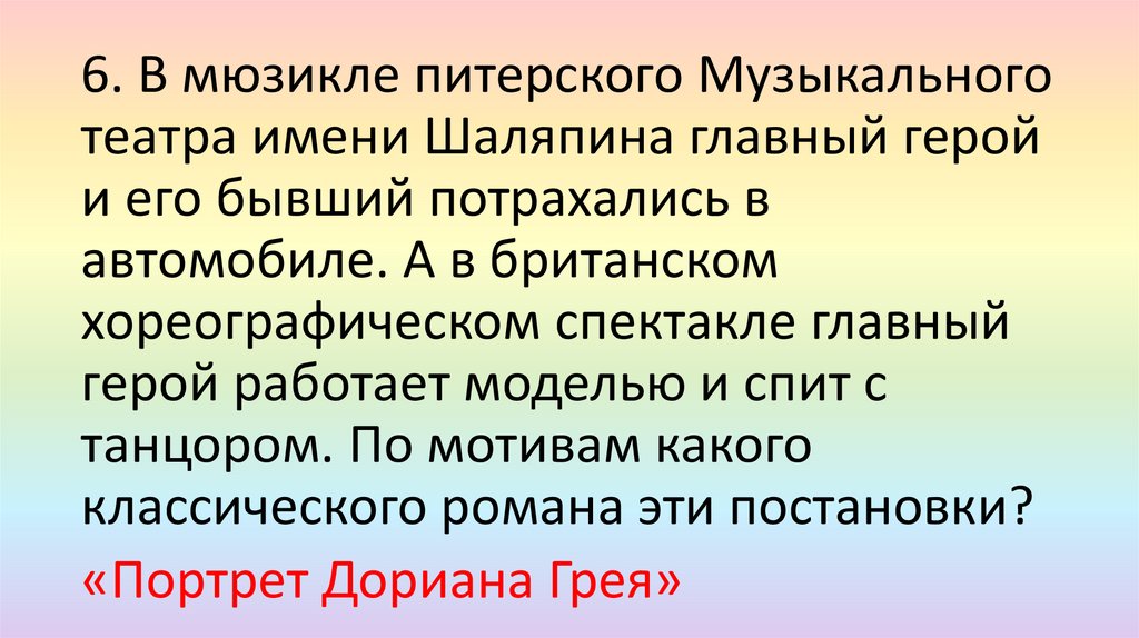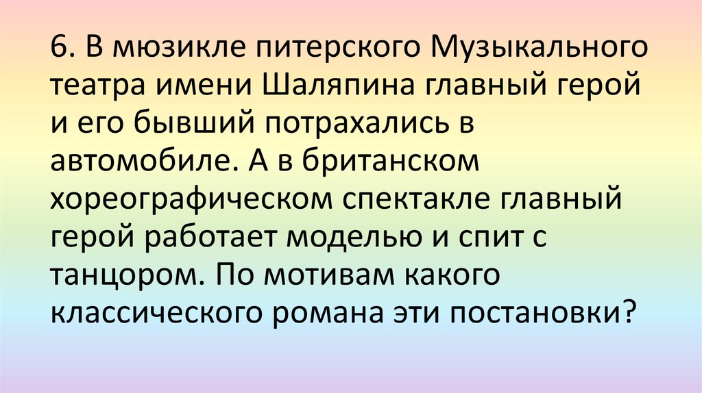 6. В мюзикле питерского Музыкальноготеатра имени Шаляпина главный герой
