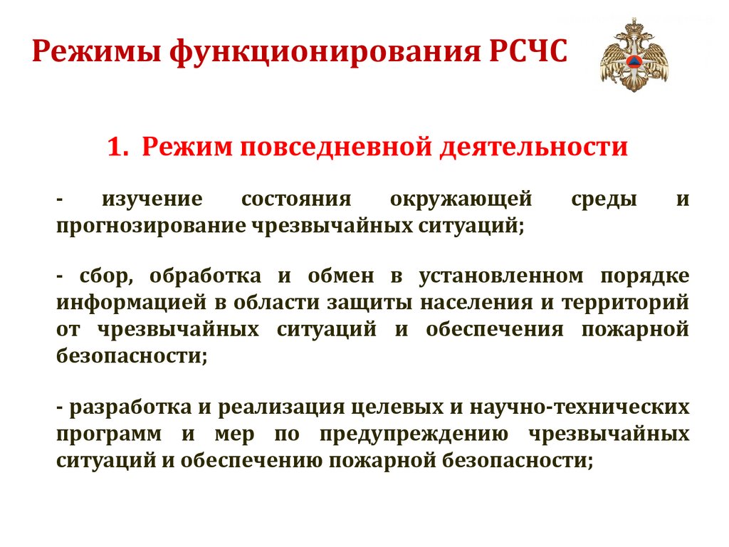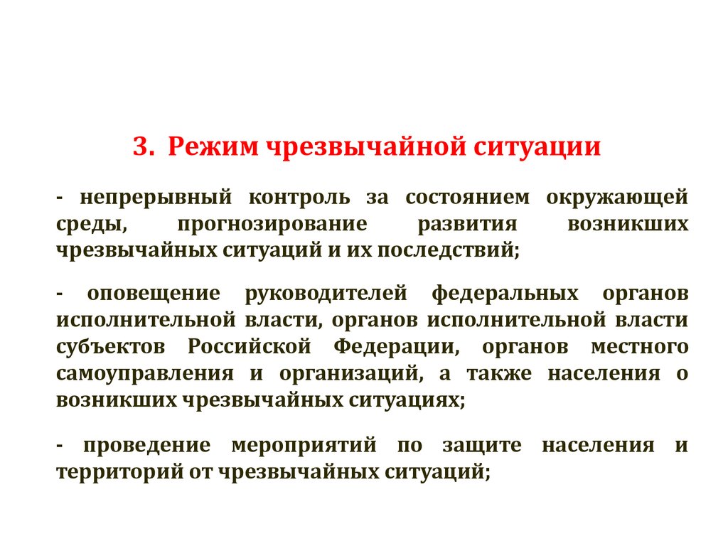 3. Режим чрезвычайной ситуации- непрерывный контроль за состоянием окружающей