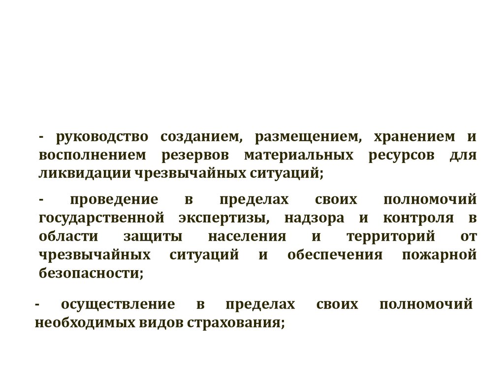 материальных ресурсов, созданных для ликвидации