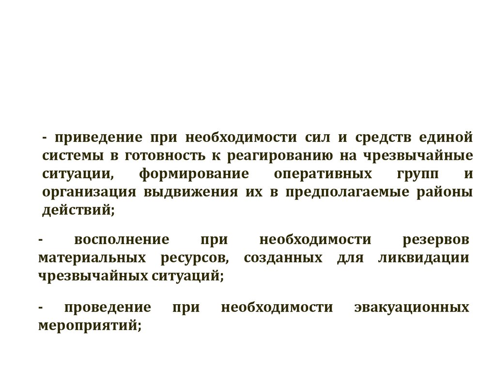 - приведение при необходимости сил и средств единойсистемы в готовность к реагированию на чрезвычайные