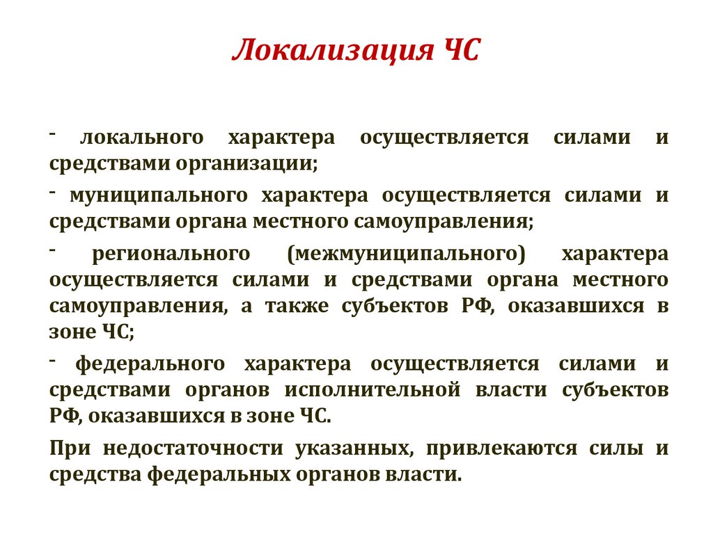 Локализация ЧС- локального характера осуществляется силами и