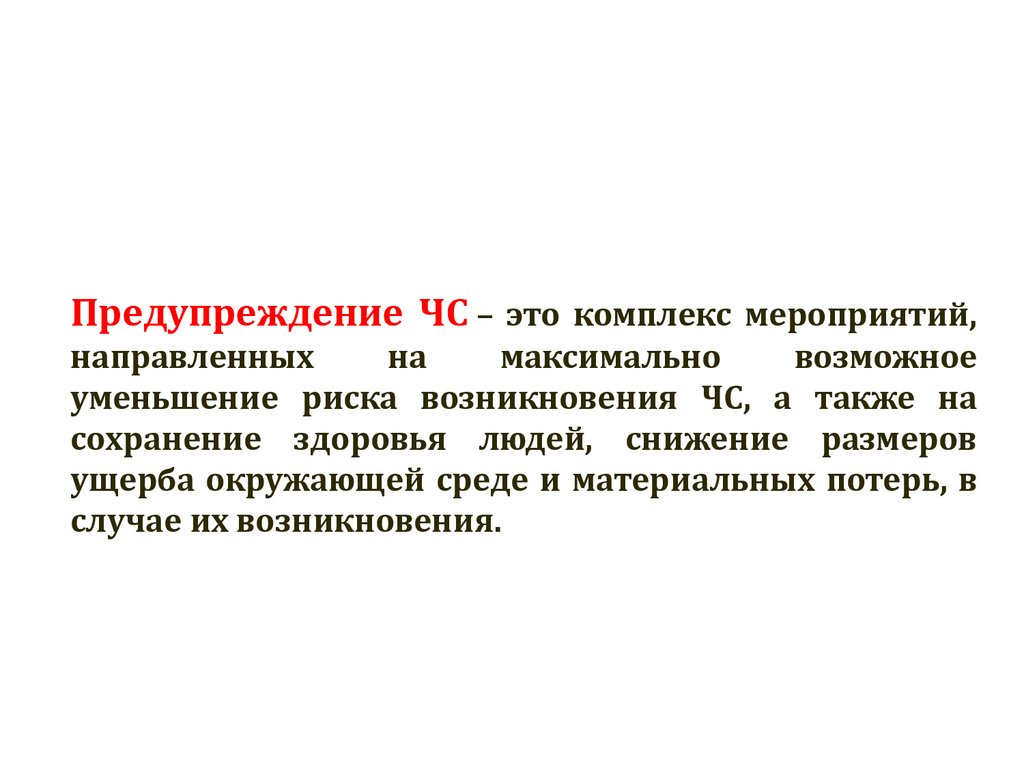 Предупреждение ЧС – это комплекс мероприятий,направленных