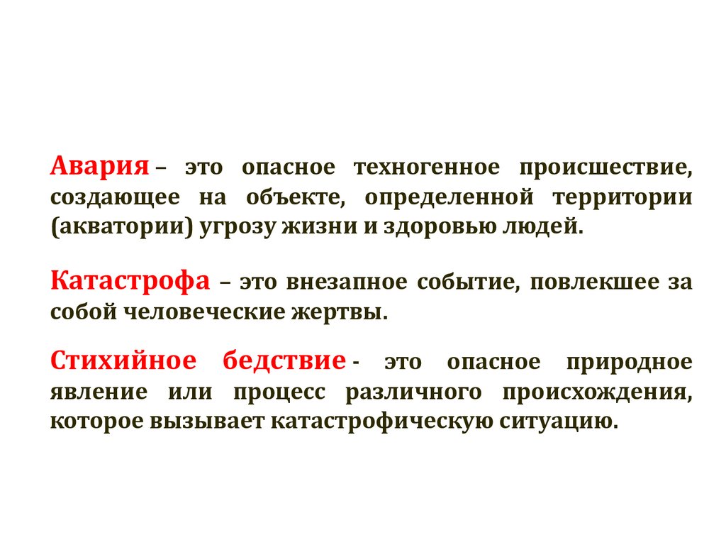 Авария – это опасное техногенное происшествие,создающее на объекте, определенной территории