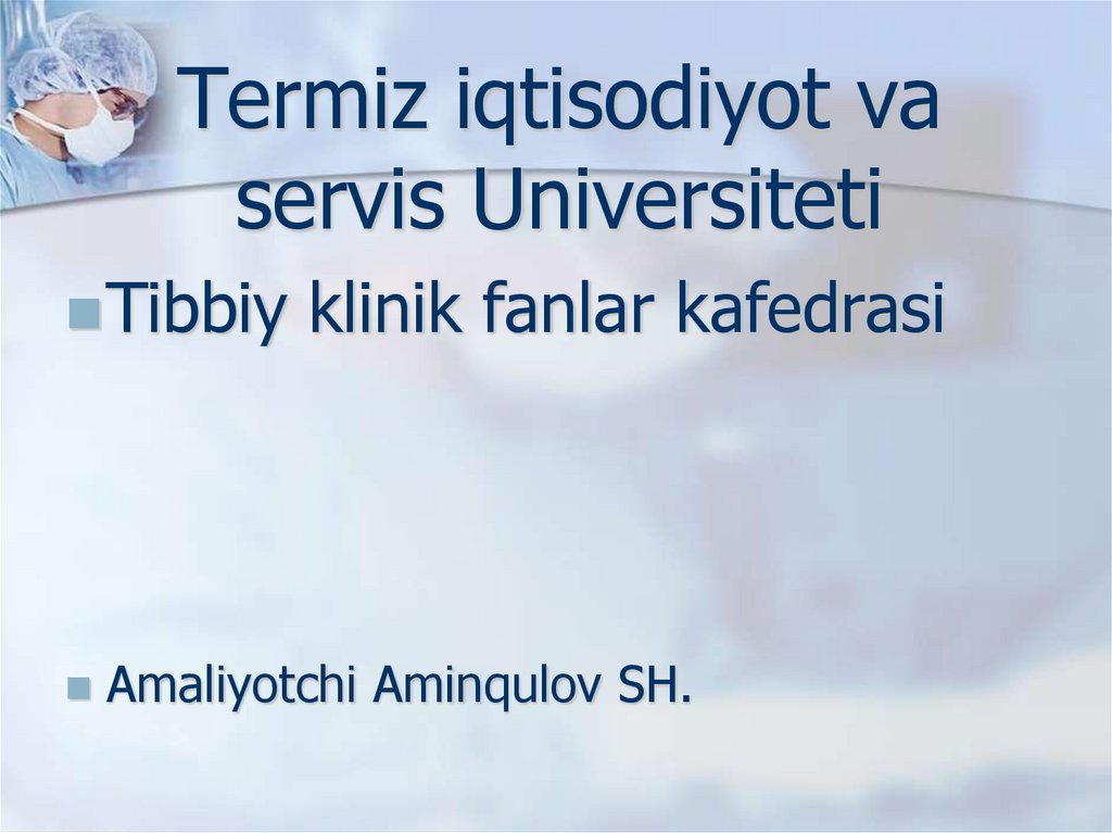 Tibbiy klinik fanlar kafedrasiAmaliyotchi Aminqulov SH.