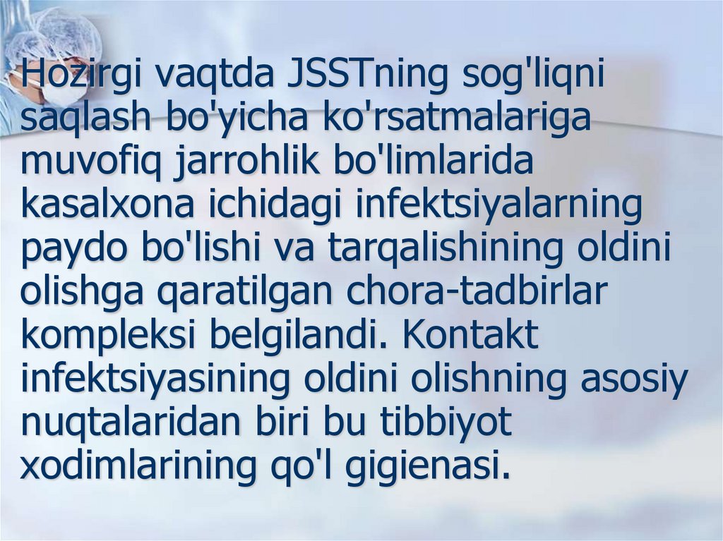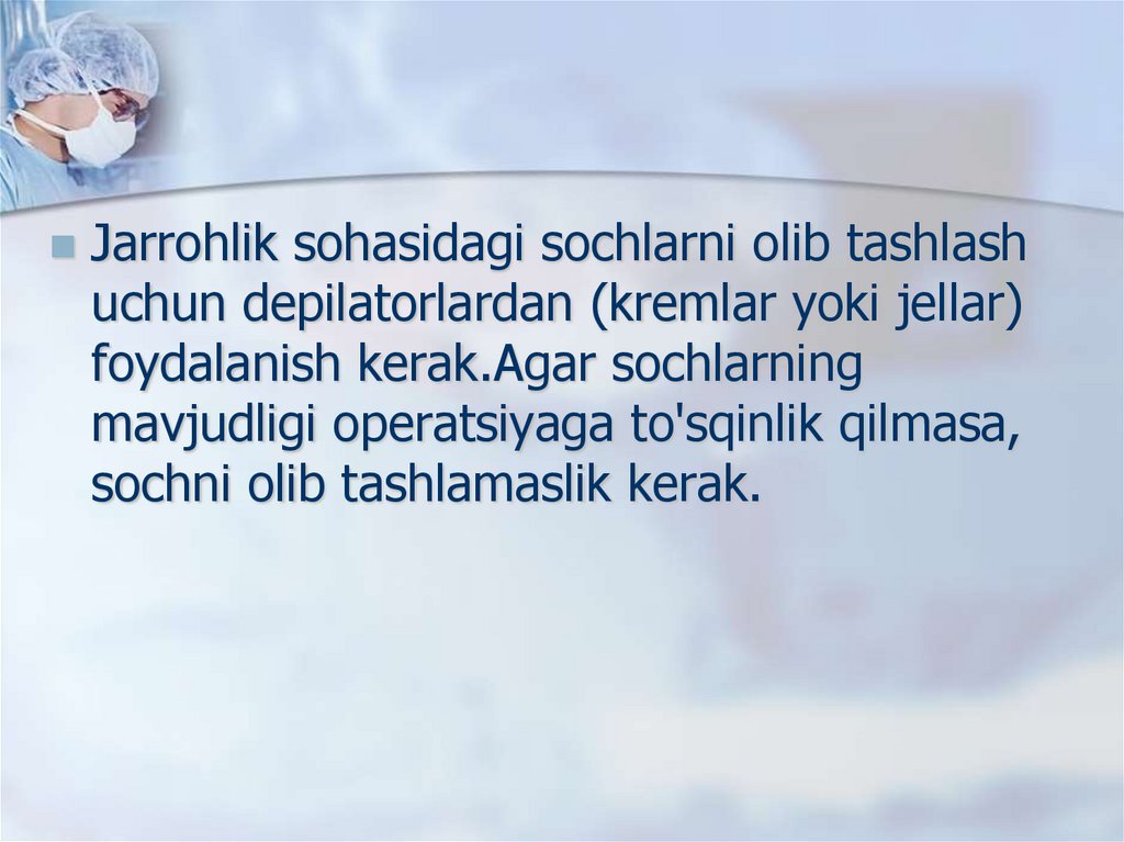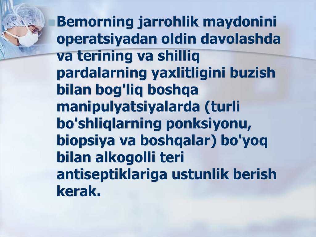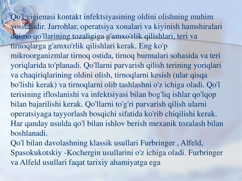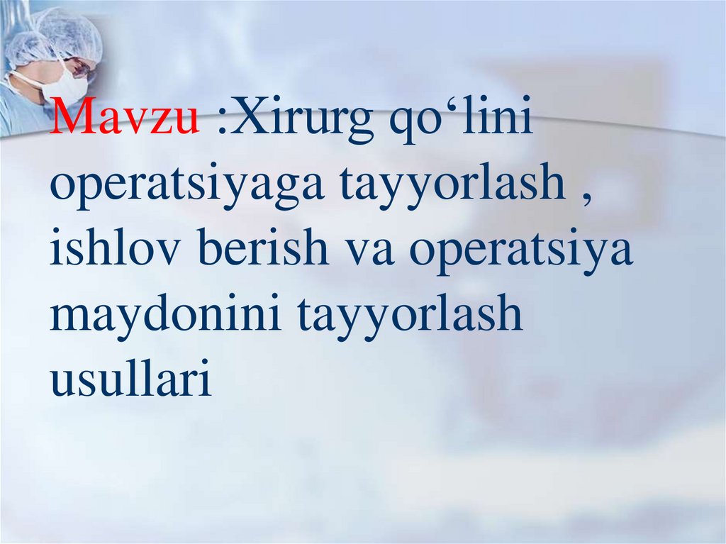 Mavzu :Xirurg qo‘linioperatsiyaga tayyorlash ,