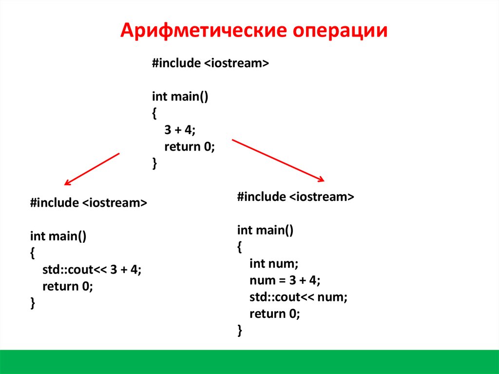 std::cout << (3 + 5 - 2); // 3 + 5 - 2 => 8 - 2 => 6