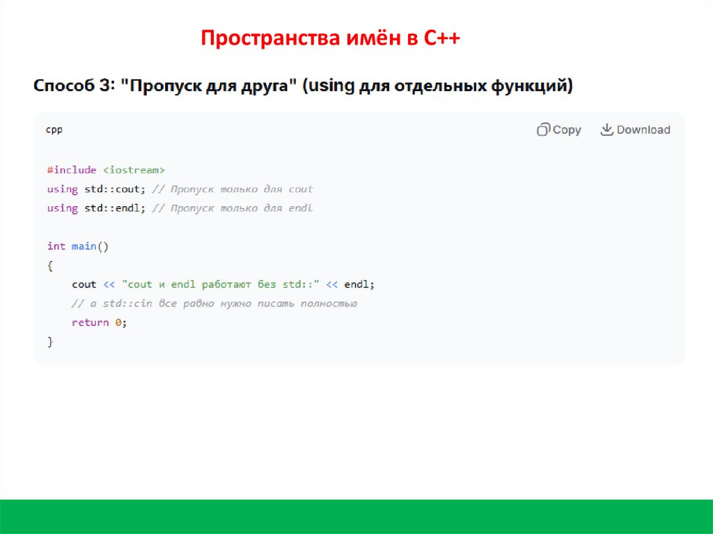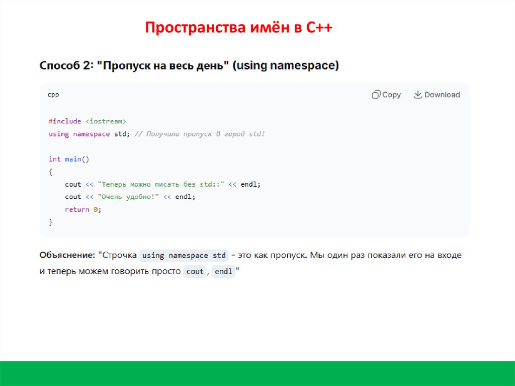 Пространства имён в C++Пространство имён (англ. namespace) — это группа