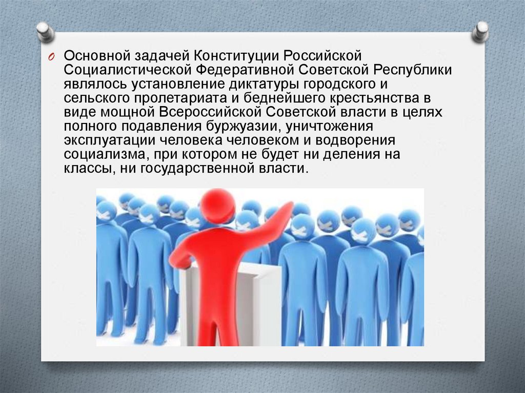 O Основной задачей Конституции РоссийскойСоциалистической Федеративной Советской Республики