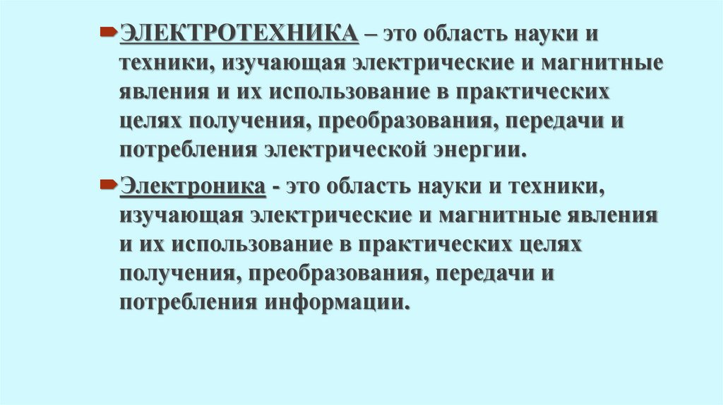 ЭЛЕКТРОТЕХНИКА – это область науки итехники, изучающая электрические и магнитные