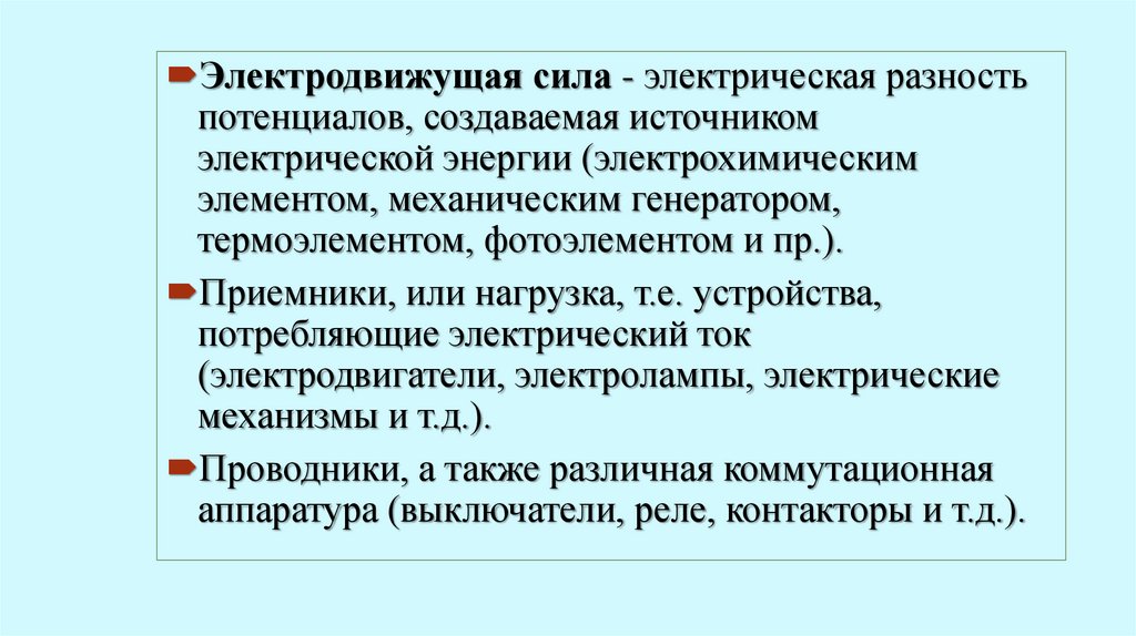 Электродвижущая сила - электрическая разностьпотенциалов, создаваемая источником