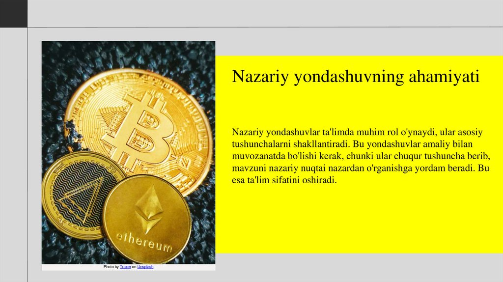 Nazariy yondashuvning ahamiyatiNazariy yondashuvlar ta'limda muhim rol o'ynaydi, ular asosiy