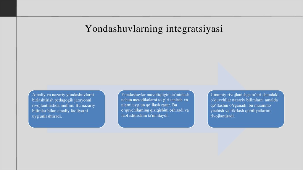 tushunchalarni shakllantiradi. Bu yondashuvlar amaliy bilan