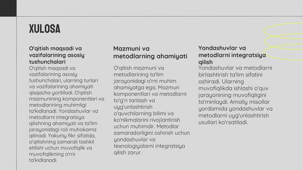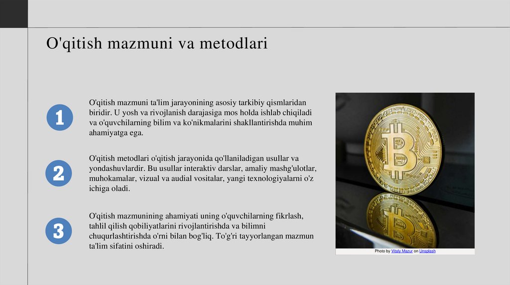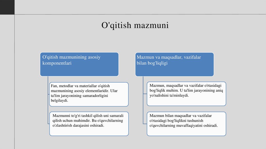 O'qitish mazmuniO'qitish mazmunining asosiy
