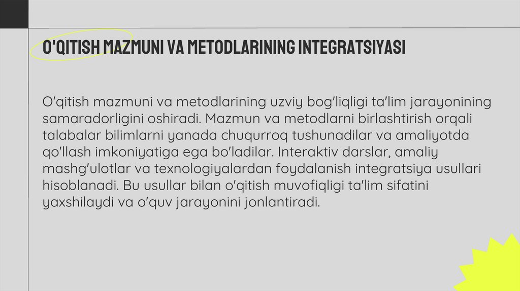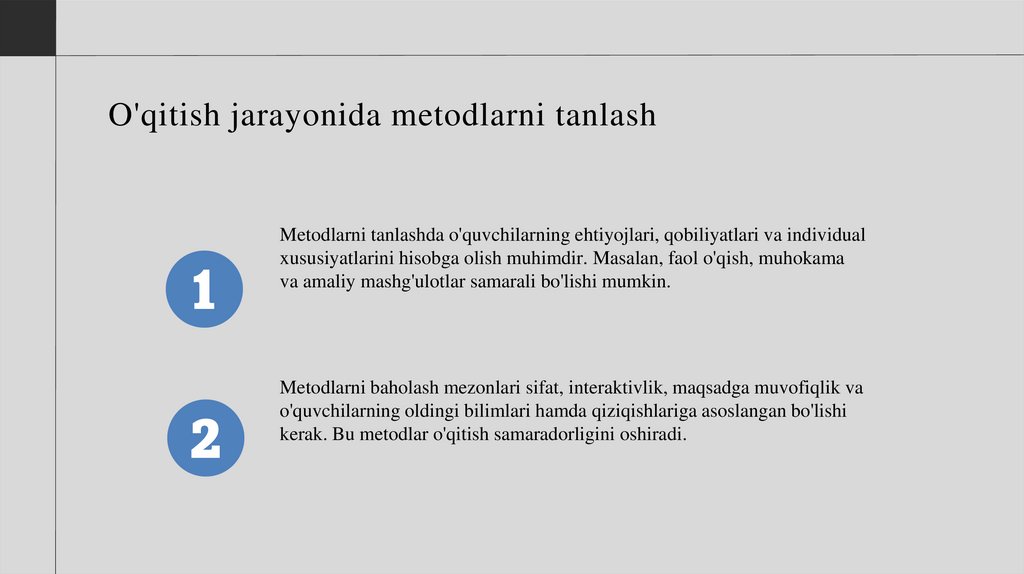 hisoblanadi. Bu usullar bilan o'qitish muvofiqligi ta'lim sifatini