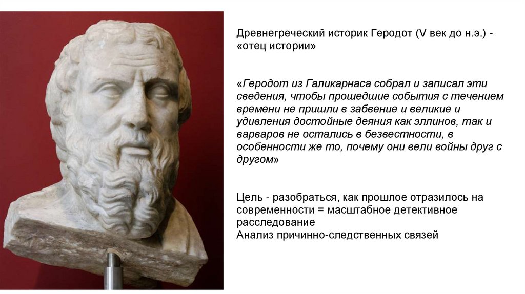 Древнегреческий историк Геродот (V век до н.э.) «отец истории»«Геродот из Галикарнаса собрал и записал эти