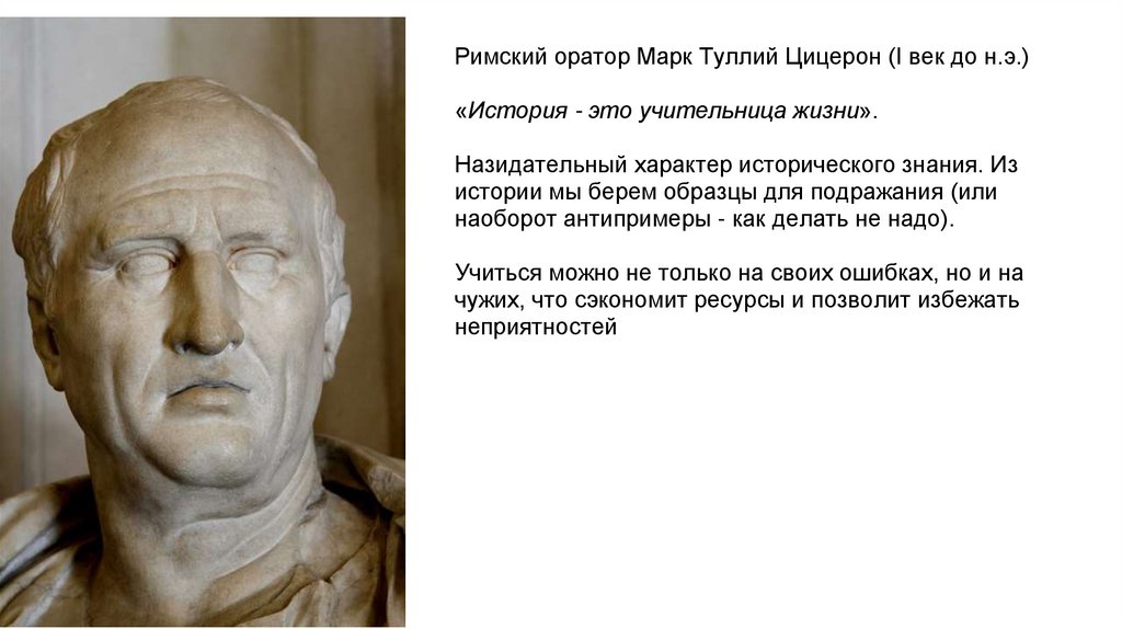 Римский оратор Марк Туллий Цицерон (I век до н.э.)«История - это учительница жизни».