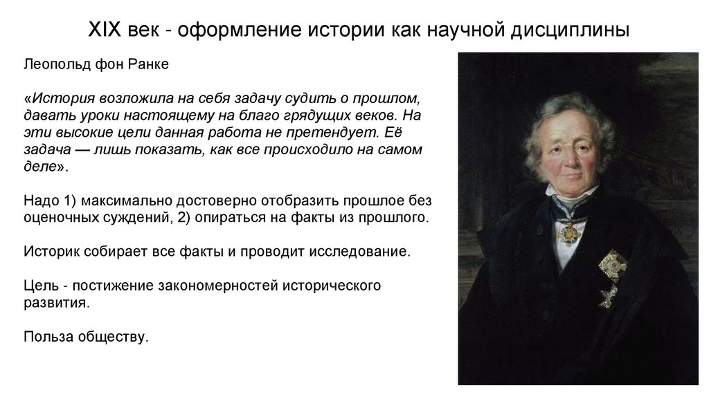 XIX век - оформление истории как научной дисциплиныЛеопольд фон Ранке
