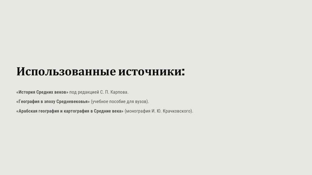 Использованные источники:«История Средних веков» под редакцией С. П. Карпова.