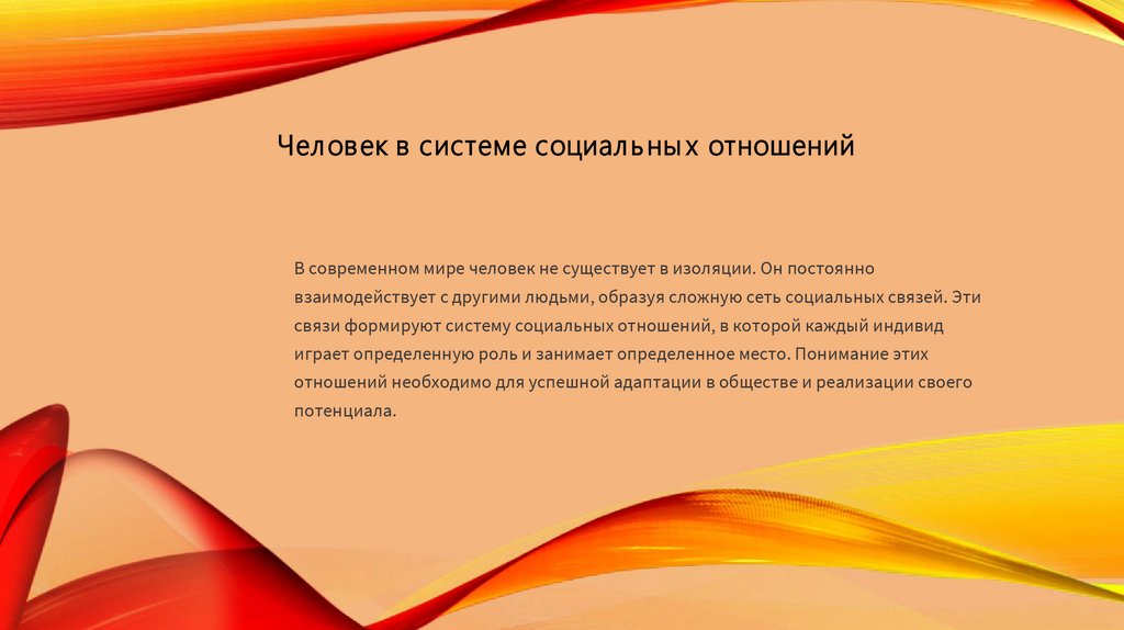 Человек в системе социаль ны х отношенийВ современном мире человек не существует в изоляции. Он постоянно